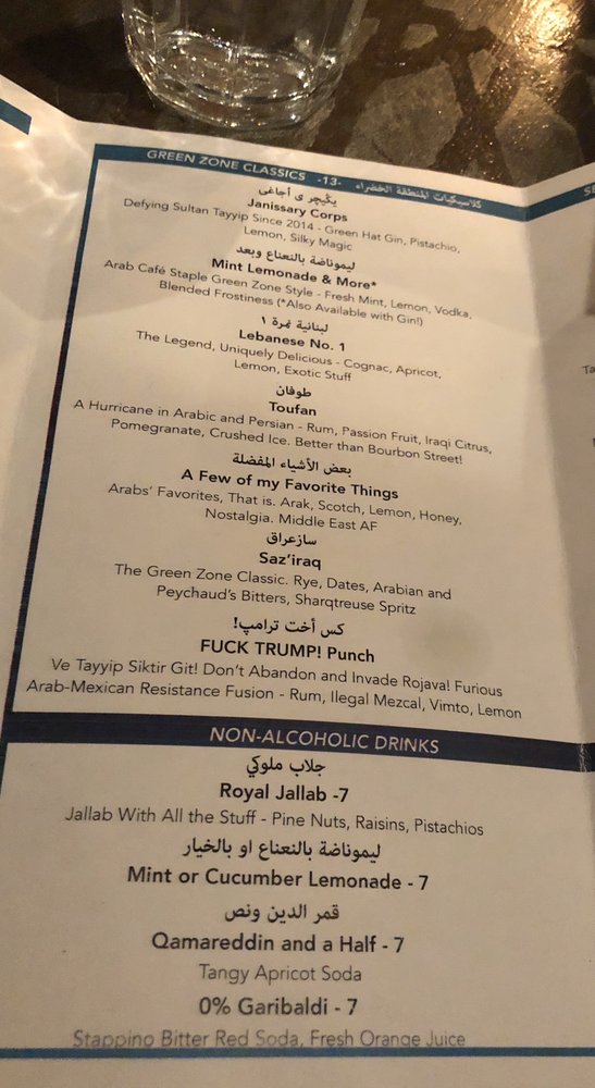 Indulge in the vibrant Middle Eastern flavors of The Green Zone, located in Washington, DC. This trendy and casual spot offers a wide range of options, from refreshing mint lemonade to signature cocktails like the TGZ Vodka Soda and the fruity Mint Lemonade with gin. The extensive food menu features must-try dishes like fried halloumi and baklava with clotted cream, earning praises from customers for their delicious taste. The intimate setting, live music on weekends, and friendly staff create a lively atmosphere perfect for a night out with friends or a romantic date. Don't miss the opportunity to experience the unique ambiance and flavorful offerings at The Green Zone.